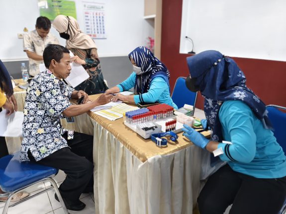 Sebelum dimulai kegiatan, dilakukan pengecekan kesehatan seperti pengukuran berat badan, tinggi badan, dan tekanan darah oleh tim medis. Setiap peserta mendapatkan informasi terkait kondisi kesehatan mereka, serta tips untuk memperbaiki pola hidup agar tetap sehat dan bugar.